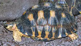 Забарвлення карапаксу в темних кольорах з численними смугами або плямами. Платрон дещо світліше. Голова коричневого або чорного кольору. Лапи жовтуваті.