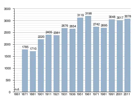 Станом на 31 грудня 2014 року в муніципалітеті офіційно проживало 195 іноземців з 20 країн, серед них 73 громадяни країн Євросоюзу та 11 громадян України.[4]
