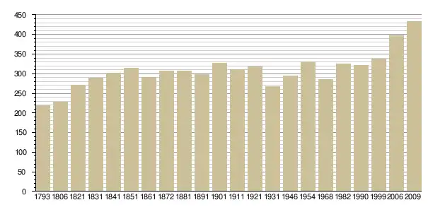 Динаміка населення (base Cassini de l'EHESS pour les nombres retenus jusque 1962[3], base Insee à partir de 1968 (population sans doubles comptes puis population municipale à partir de 2006)[4] · [5] ):