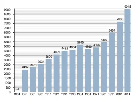 Станом на 31 грудня 2014 року в муніципалітеті офіційно проживали 603 іноземці з 40 країн, серед них 274 громадяни країн Євросоюзу та 7 громадян України.[4]