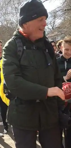 ![]() Майкл Доббс під час благодійної ходи | ||||
