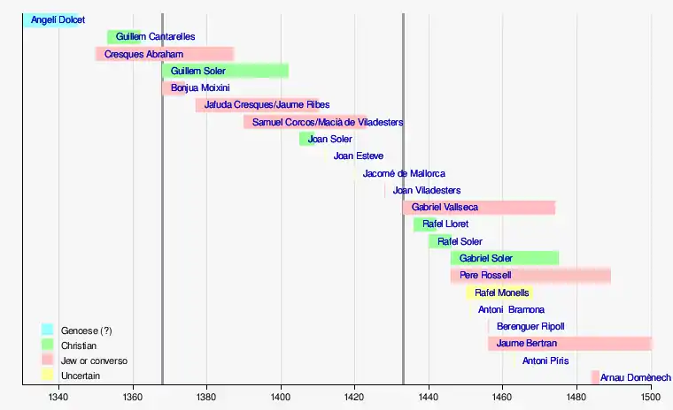 Іншим відомим майорканським єврейським картографом був Хайм ібн Ріш. Він був змушений прийняти християнство і взяв ім'я Хуан де Валсеча. Ймовірно, він був батьком Габріеля де Валсеки, автора ще однієї відомої карти світу (mappa mundi), якe пізніше використовував Америго Веспуччі. Габріель також склав дуже точні карти Чорного та Середземного морів . Ще одним єврейським картографом був Месія де Вільдестес. Видатна карта Вільдестеса, датована 1413 роком, зберігається в Національній бібліотеці Франції в Парижі.