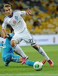 24 жовтня 2013 року дебютував у єврокубкових змаганнях, відігравши повний матч групового етапу Ліги Європи проти швейцарського «Туна»[6]. 24 квітня 2014 року забив дебютний гол у футболці «Динамо», зрівнявши на останніх хвилинах рахунок у гостьовому матчі проти одеського «Чорноморця» (1:1)[7]. 11 травня 2014 року на 13 хвилині матчу проти «Іллічівця» отримав пряму червону картку за фол останньої надії, яка стала найшвидшим вилученням в історії «Динамо»[8], проте кияни все ж змогли перемогти 2:0.