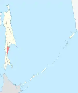 Знаходиться на південної части острова Сахалін.