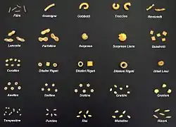 В Італії різні типи макаронних виробів мають назви, що відповідають їхнім формам та розмірам.