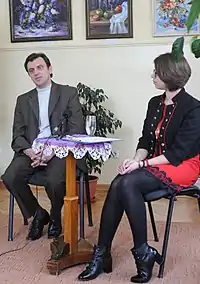 | Буває, що твій внутрішній стан співпадає зі станом героя. Якщо ж ні, то потрібно відшукати цього персонажа в собі. Я проти того, щоб тягнути ролі на себе. Треба шукати в ролі іншу людину, а не грати самих себе, тільки з іншим текстом. Але трапляються й такі ролі, в яких повністю розчиняюся. Буває, протягуєш руку до партнера по сцені і розумієш, що то вже не ти. І тоді немає награних емоцій —- все відбувається цілком природно. А якщо говорити про Рендла Макмерфі (роль В. Макара у виставі Молодіжного театру "Пролітаючи над гніздом зозулі") — це та людина, яка знаходиться десь глибоко в мені. Його стан постійного бунту мені дуже імпонує. Та не всі ролі так просто даються — кожна цікава і складна по-своєму, йде постійна робота над персонажем. Треба шукати родзинки, додавати щось від себе, від автора, від режисера та віддавати на розсуд глядача. |