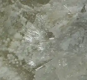Форми виділення: волокнисті кристали, радіальні агрегати.