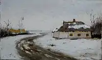 Зимовий пейзаж, околиця села. Поч.20 ст., фанера, олія.