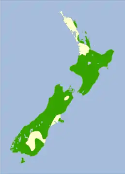 Ендемік Нової Зеландії. Поширений на обох головних островах, за винятком північних районів Північного острова. Населяє також численні офшорні острови, Оклендські острови та острів Стюарт. Мешкає у густих первинних лісах з різноманітним і густим підліском з чагарників та молодих дерев.
