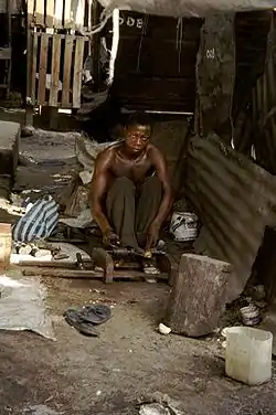 ![]() Різьбляр маконде за роботою на ринку Мвенґе у Дар-ес-Саламі, квітень 2002 року | |