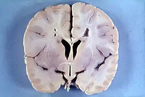 Гідроцефалія — захворювання, що характеризується надлишковим накопиченням цереброспінальної рідини у шлуночковій системі головного мозку в результаті ускладнення її переміщення від місця секреції (шлуночки головного мозку) до місця абсорбції до кровоносної системи (субарахноїдальних цистерн (субарахноїдального простору)) — окклюзійна гідроцефалія, або в результаті порушення абсорбції — арезорбти́вна гідроцефалія.