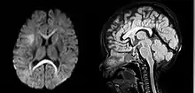 ![]() МРТ пацієнта з доброякісною сімейною макроцефалією (чоловік з окружністю голови> 60 см) МРТ пацієнта з доброякісною сімейною макроцефалією (чоловік з окружністю голови> 60 см) | |