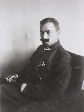 Учасник російсько-японської війни 1904—1905 років. Був контужений. Нагороджений орденом святого Георгія 4-го ступеня. У 1907 році отримав звання штабс-капітан. З 1908 по 1911 рік військовик навчався у Віленському військовому училищі.