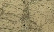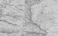 Оригінальний текст (рос.)Граничная черта, означающая ныне окружность земли Донских казаков, Высочайше утверждена в 1786 году на карте, а в 1795 и 1796 годах проведена в натуре комиссарами от губерний и со стороны войска отряженными; в сей черте живых урочищ весьма мало; большая часть ее означается межевою нарезкою. Она идет в следующем виде: от устья Калмиуса, впадающего в Азовское море, левым берегом сей речки до её вершины и потом сухою чертою до р. Крынки; отсюда левым берегом р. Булавина Колодезя, от вершины которой p. Миусом и сухою чертою до р. Хрустальной; далее сухою же чертою, прерывающеюся балками и р. Каменкою, до р. Белой, правым берегом сей речки до реки Северского Донца, левым берегом оного до устья р. Койсуга и вверх по оной; потом простирается большею частью сухая черта, чрез речки: Деркул и Камышную, мимо вершин речек: Нагольной, Мёловой, Калитвы и Тихой, до берега реки Дона.