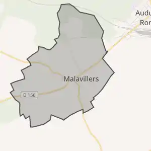 - Розташування муніципалітету Малавілле на мапі Франції та сусідні муніципалітети