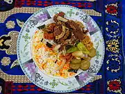 На обід та вечерю подають одну страву на одному блюді або рис з багатьма стравами.