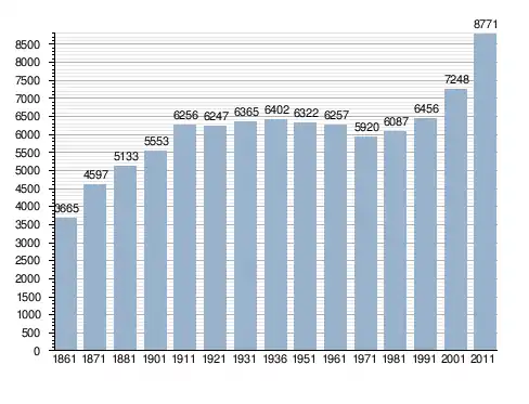 Станом на 31 грудня 2014 року в муніципалітеті офіційно проживало 756 іноземців з 41 країни, серед них 260 громадян країн Євросоюзу та 63 громадяни України.[4]