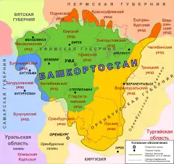 - 2) «Велика Башкирія» — тут мається на увазі територія БАРСР у межах після 1922 р. (докладно описано в ст. Велика Башкирія)