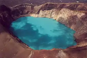 ![]() Кисле озеро в кратері вулкана. Кисле озеро в кратері вулкана. | ||||