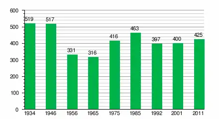 За даними перепису населення 2011 року у селі проживали 425 осіб.