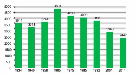 За даними перепису населення 2011 року у місті проживали 2447 осіб.