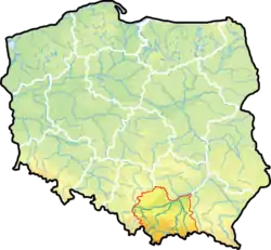 Воєводство частково розташоване в межах Західних Карпат на Малопольській височині. Займає західну частину історичної та географічної області, знаної як Малопольща.