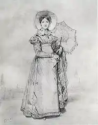 Вже сучасники помітили різницю між жіночими та чоловічими портретами пензля Енгра[1]. Жіночі портрети художника або відбивали захоплення моделлю, її зовнішньою привабливістю і багатством, або були суворо реалістичні і точно фіксували некрасиве обличчя, товсту статуру, модну сукню при відсутності розвиненого внутрішнього світу. Часто жіночі портрети Енгра (і олійними фарбами, і в малюнках) індиферентні, закриті, точні зовнішньо і в деталях, але байдужі до всього іншого, оквім одягу і аксесуарів.