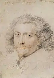 Портретні малюнки Рубенса розділяють на малюнки обличчя та на ретельні малюнки драперії, костюмів. Існує лише відносно мала частина малюнків, де ці дві складові образу відтворені в повному обсязі. Дев'ятирічне перебування художника в Італії і вивчання там творів італійських майстрів вплинули на графічну техніку Рубенса. Не дивно, що частку малюнків Рубенса початкового періоду приймали то за твори італійського художника, то за твори самого Франсіско де Сурбарана[4]. Художник рано відвідав Іспанію і міг знати твори Сурбарана.