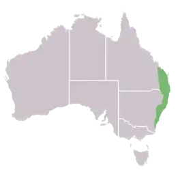 Ендемік Австралії. Поширений вздовж східного узбережжя країн на сході Нового Південного Уельсу та південному сході Квінсленду. Мешкає у скребах з великою кількістю рослинності, що забезпечує щільний покрив.