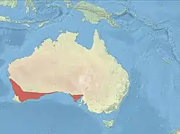 Ендемік Австралії. Поширений на півдні Західної Австралії та на півострові Ейр. Мешкає в лісових районах із середземноморським кліматом.