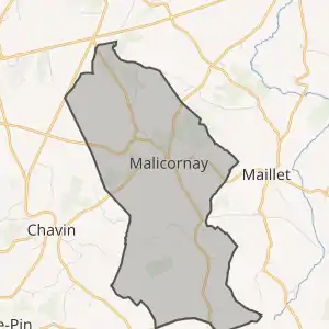 - Розташування муніципалітету Малікорне на мапі Франції та сусідні муніципалітети