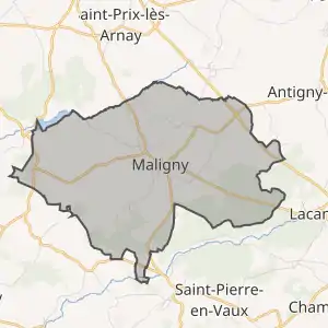 - Розташування муніципалітету Маліньї на мапі Франції та сусідні муніципалітети