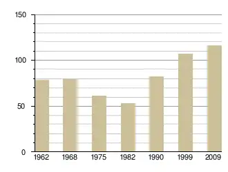 - Insee : historique des populations par commune depuis le recensement de 1962, наведено за французькою вікіпедією