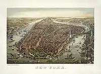 Панорама Нью Йорк Сіті. 360°. У центрі острова Мангеттен округ Нью-Йорк — центр міста Нью-Йорк, центр американської біржової торгівлі.