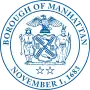 Межі боро Мангеттен (англ. The Borough of Manhattan — адміністративної одиниці міста Нью-Йорк) та округу Нью-Йорк (англ. New York County — адміністративної одиниці штату Нью-Йорк) збігаються. Однак перший є адміністративною одиницею міста, а другий — штату. Відповідно, функції місцевого самоврядування, що закріплені за штатом, виконують служби округу Нью-Йорк. Функції місцевого самоврядування, що закріплені за містом, виконують служби боро.