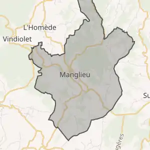 - Розташування муніципалітету Мангльє на мапі Франції та сусідні муніципалітети