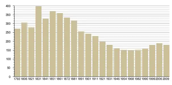Динаміка населення (base Cassini de l'EHESS pour les nombres retenus jusque 1962[3], base Insee à partir de 1968 (population sans doubles comptes puis population municipale à partir de 2006)[4] · [5] ):