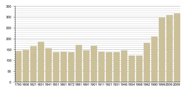 Динаміка населення (base Cassini de l'EHESS pour les nombres retenus jusque 1962[3], base Insee à partir de 1968 (population sans doubles comptes puis population municipale à partir de 2006)[4] · [5] ):