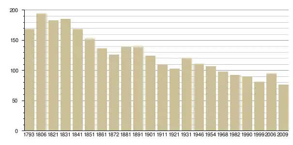 Динаміка населення (base Cassini de l'EHESS pour les nombres retenus jusque 1962[3], base Insee à partir de 1968 (population sans doubles comptes puis population municipale à partir de 2006)[4] · [5] ):