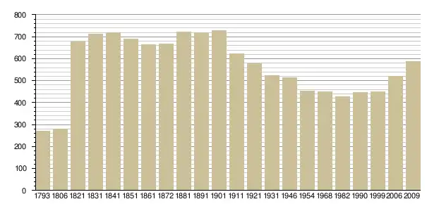 Динаміка населення (base Cassini de l'EHESS pour les nombres retenus jusque 1962[3], base Insee à partir de 1968 (population sans doubles comptes puis population municipale à partir de 2006)[4] · [5] ):