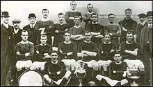 Клуб «Манчестер Юнайтед», був створений в 1878 році під назвою «Ньютон Хіт Ланкаширські і Йоркширські залізниці». У 1892 році його прийняли до складу Футбольної ліги Англії (через 4 роки після її створення). На початку 20-го століття фінансові справи клубу йшли не найкращим чином і до 1902 року «Ньютон Хіт» був на межі банкрутства. В ролі рятівника виступив великий місцевий підприємець Джон Девіс, який заплатив борги клубу і змінив його назву на «Манчестер Юнайтед». Варто відзначити ім'я першого, по суті, тренера і директора «МЮ» в одній особі — ним став Ернест Мангналл. Саме при ньому «Юнайтед» вийшов в Перший дивізіон, і саме його старання призвели до того, що в кінці 1906 року склад клубу поповнив один з найсильніших футболістів чемпіонату — валлієць Біллі Мередіт, гравець, між іншим, «Манчестер Сіті». Невдовзі прийшли й перші титули — чемпіонство і Суперкубок в 1908 році та Кубок Англії роком пізніше. У наступному році команда переїхала з «Бенк Стріт» на «Олд Траффорд». У 1911 році «МЮ» знову став першим у чемпіонаті Англії. Той сезон запам'ятався ще й тим, що в матчі за Суперкубок Англії «МЮ» здолав «Свіндон Таун» з рахунком 8:4, а найкращий бомбардир манкуніанців Гералд Гелс забив 6 м'ячів.