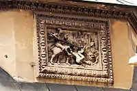 Фасад каплиці Боїмів. «Георгій змієборець», рельєф в маньєристичній рамі.