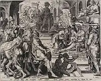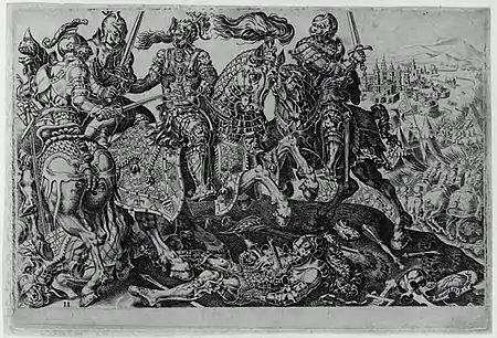 Мартен ван Хемскерк (ідея і малюнок), 1556 р., гравер Дірк Волькертсен Корнгерт. «Імператор Карл V при захопленні Тунісу». Бостонський музей образотворчих мистецтв