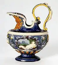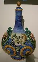 Можливо, Орацио Фонтана або його майстерня. Керамічна пляшка для пілігріма з морськими істотами, Урбіно, до 1570, Музей Гетті, Каліфорнія