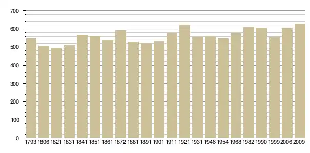 Динаміка населення (base Cassini de l'EHESS pour les nombres retenus jusque 1962[3], base Insee à partir de 1968 (population sans doubles comptes puis population municipale à partir de 2006)[4] · [5] ):