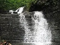 По дорозі від села до Манявського водоспаду, перед хрестом загиблим воякам ОУН-УПА, справа в річку Манявку впадає струмок Замлаки. Замлацький водоспад (каскадного типу, загальна висота 8 м.) розташований вище від гирла струмка на відстані приблизно 600 м. Уступ водоспаду сформований дрібноритмічним флішем.