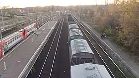 - Радіального Ризького напрямку, дільниця Москва-Ризька — Шаховська (частина поїздів прямує Олексіївською сполучною лінією через Москва-Пасажирська-Курська далі з/на Курський напрямок МЗ, найдальша станція Серпухов). Зупиняються на першій острівній високій платформі. Обслуговуються моторвагонним депо Нахабіно (Ризького) і Перерва (Курського) напрямків.