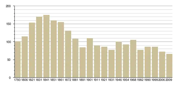 Динаміка населення (base Cassini de l'EHESS pour les nombres retenus jusque 1962[3], base Insee à partir de 1968 (population sans doubles comptes puis population municipale à partir de 2006)[4] · [5] ):