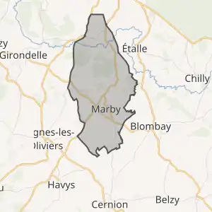 - Розташування муніципалітету Марбі на мапі Франції та сусідні муніципалітети