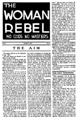 - The Woman Rebel — Seven issues published monthly from March 1914 to August 1914. Sanger was publisher and editor.